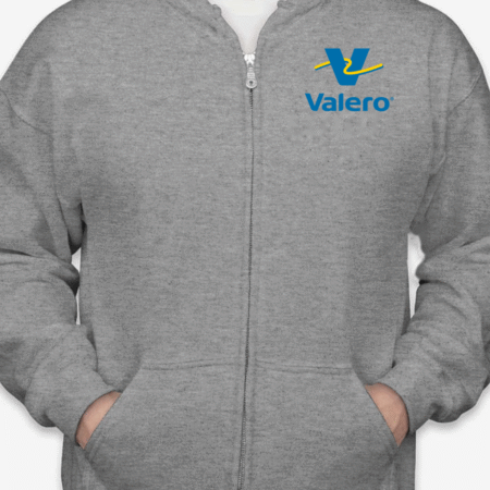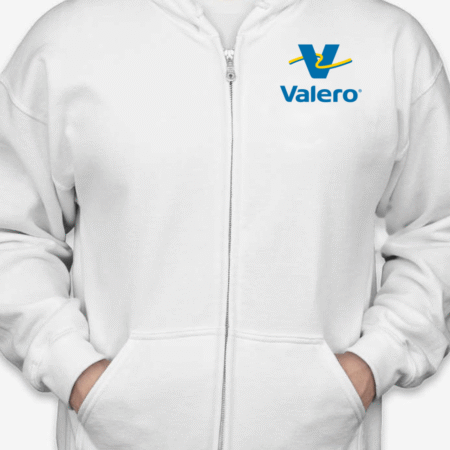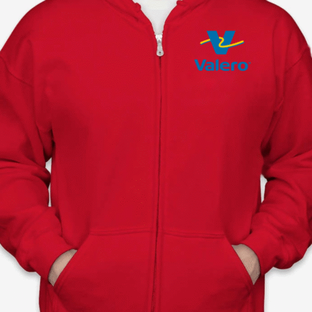 Fuel up your streetwear collection with this Valero Logo Zip-Up Hoodie. Featuring the bold and recognizable Valero gas station logo on the chest, this full-zip hoodie is ideal for brand fans, road trip lovers, or anyone who appreciates retro and corporate-inspired fashion. Built for comfort and made to last, it’s perfect for everyday wear. Available in sizes S to 2XL.