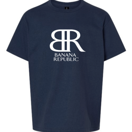 Elevate your kid’s casual wear with this Youth Banana Republic Inspired T-Shirt. Featuring the iconic “BR” monogram and sleek text logo, this shirt blends timeless brand style with everyday comfort—perfect for kids who like a clean, classy look.