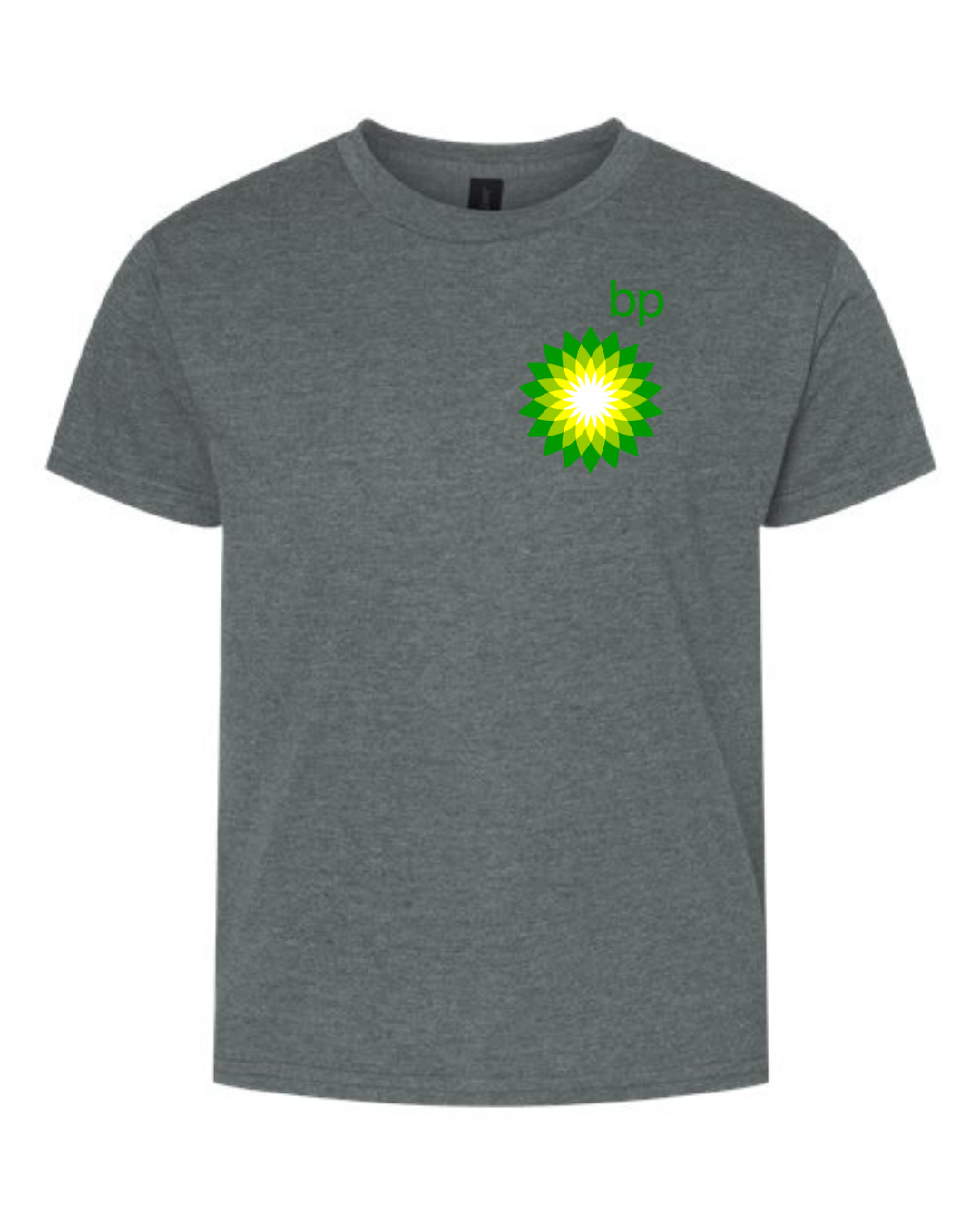 Fuel up their wardrobe with this Youth BP Logo Inspired T-Shirt. Featuring the recognizable green and yellow BP emblem on the chest, this tee blends eco-friendly vibes with a bold branded look—perfect for young fans of iconic logos.