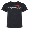Let your kids rep the iconic CapitalOne logo in style! This youth t-shirt is soft, comfortable, and perfect for fans of classic branding or looking for something fun and bold. A unique addition to any wardrobe!