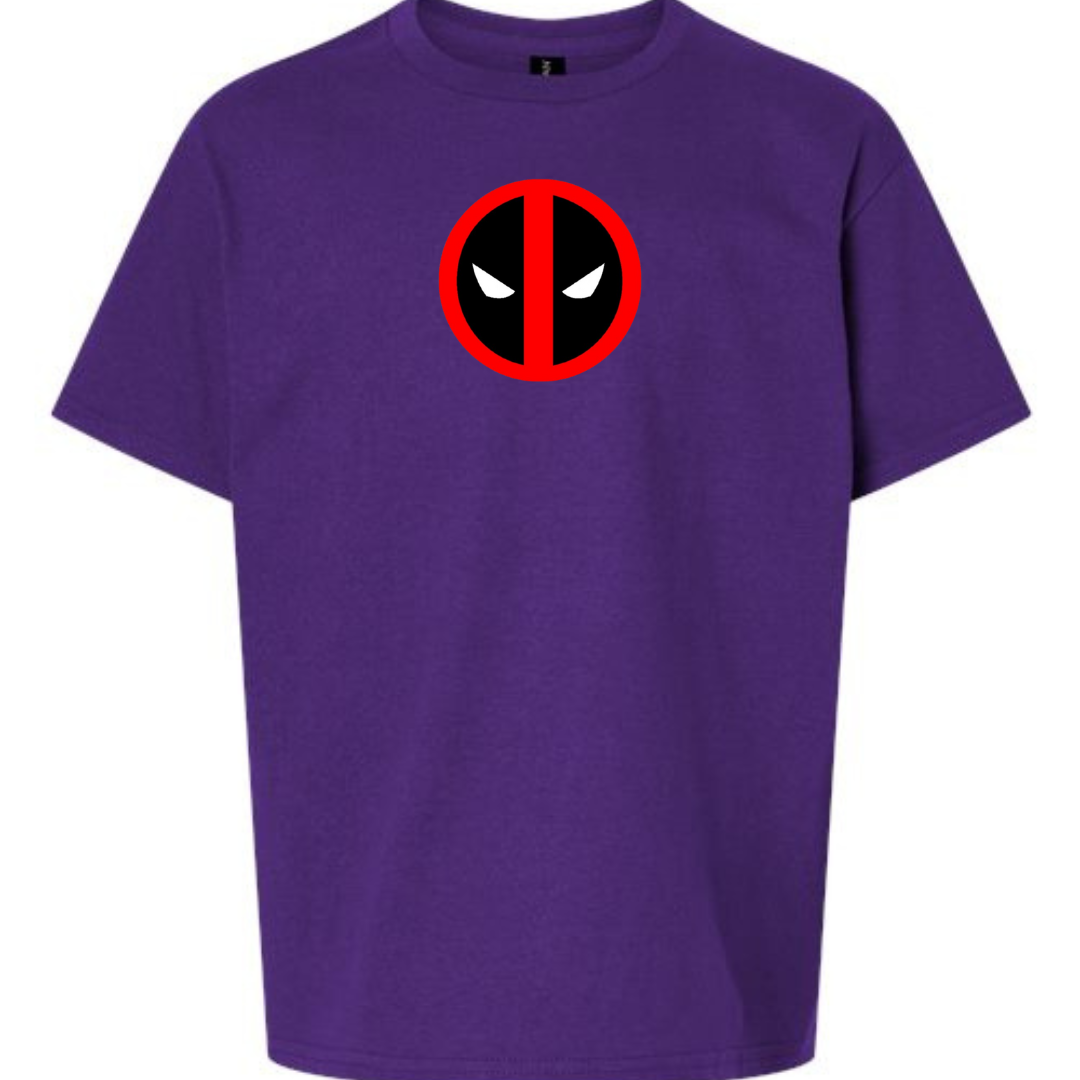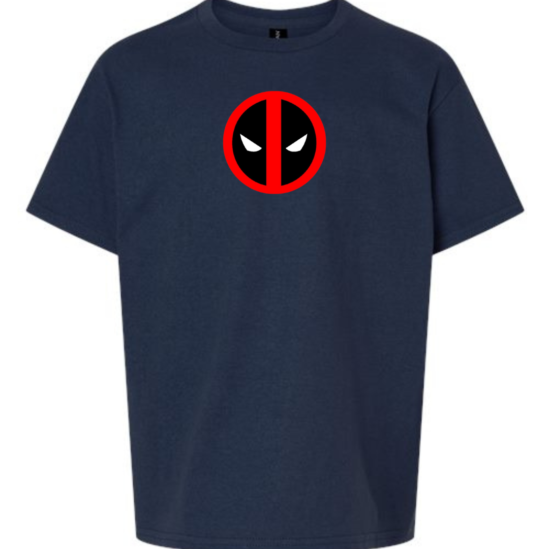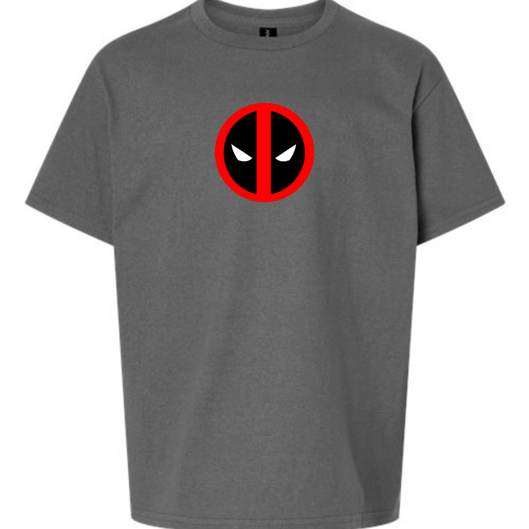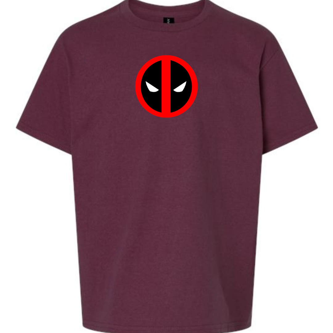 Let your kid show off their love for the Merc with a Mouth in this Youth Deadpool Logo Inspired T-Shirt! Featuring the bold and unmistakable red-and-black face logo, this tee brings comic book cool to any casual outfit.