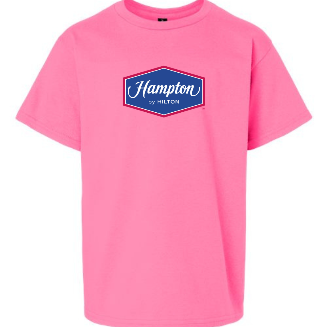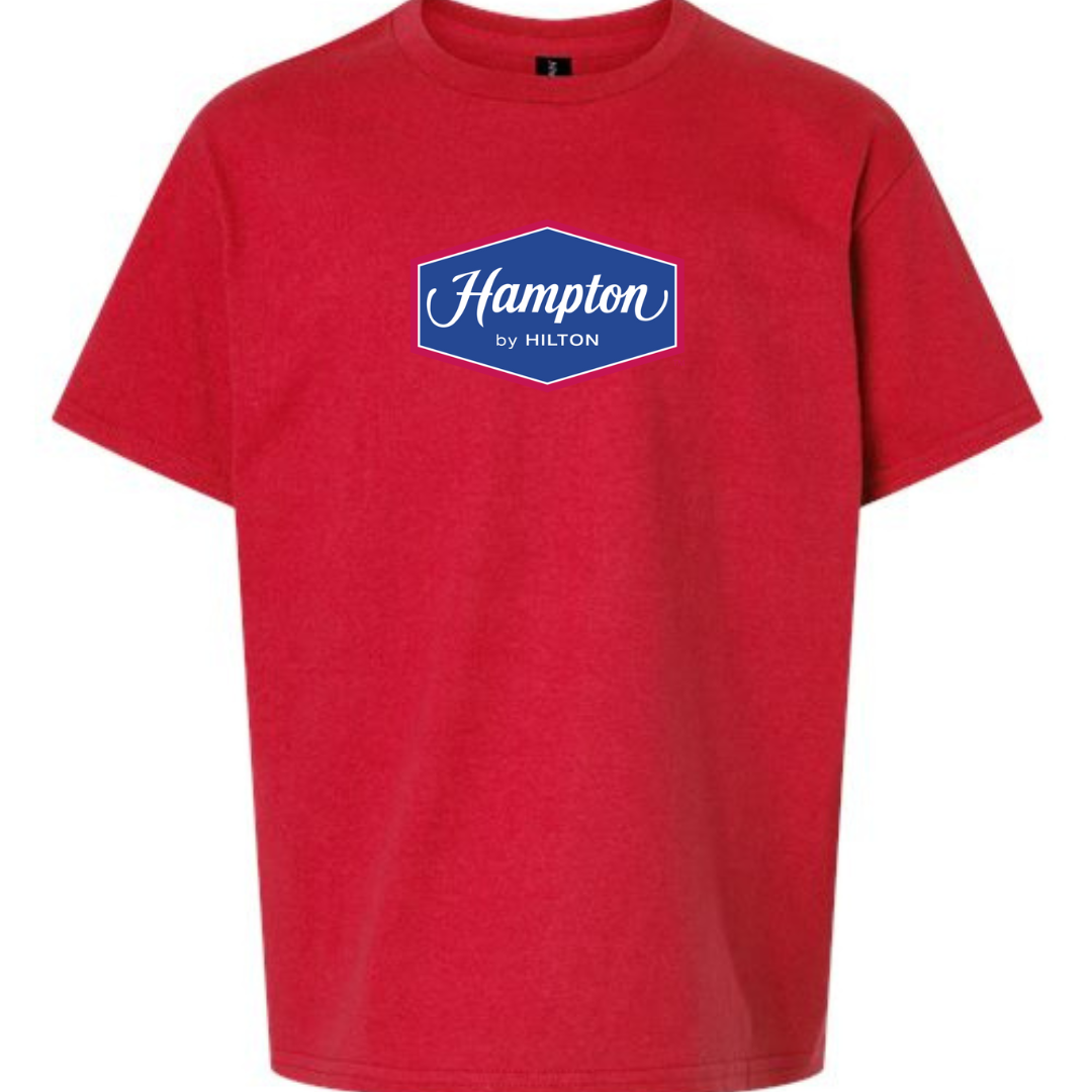 Add a touch of hospitality style to their wardrobe with this Youth Hampton by Hilton Logo T-Shirt. Featuring the recognizable blue and red Hampton badge on a clean white tee, this shirt is perfect for young travel fans or those who love unique brand-inspired fashion.