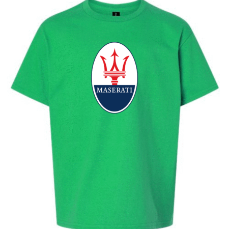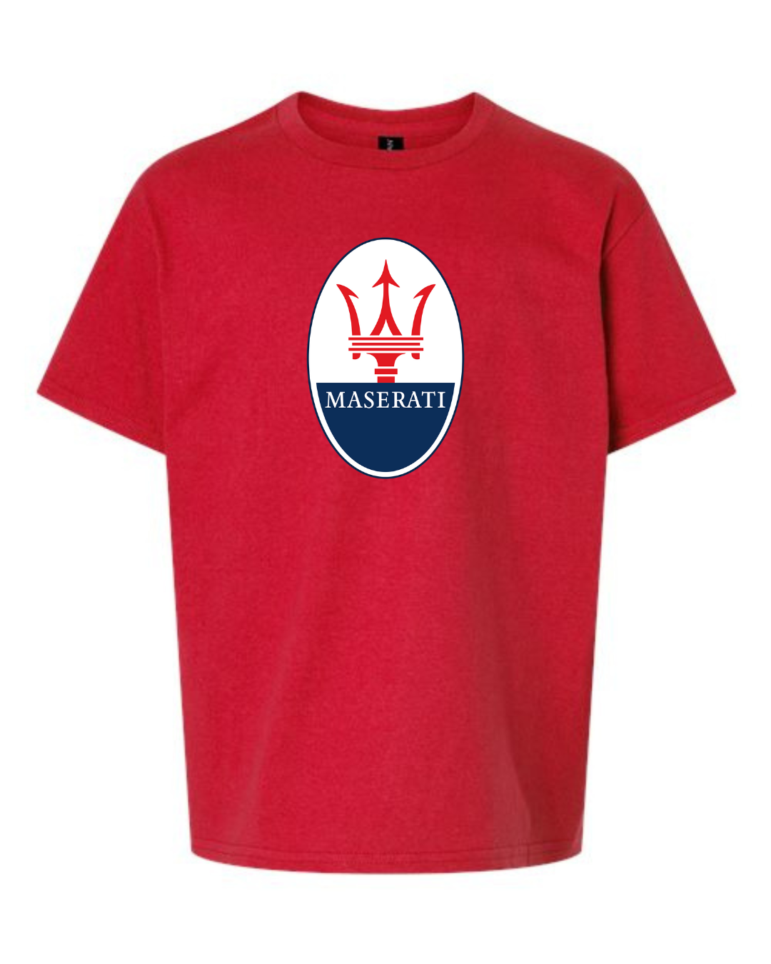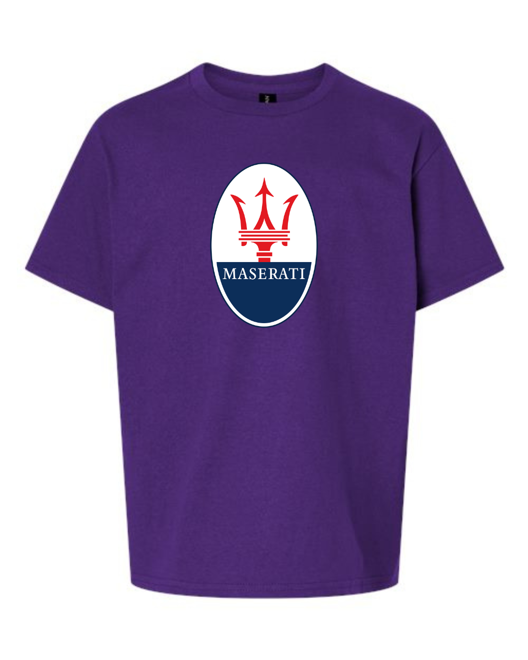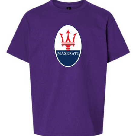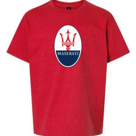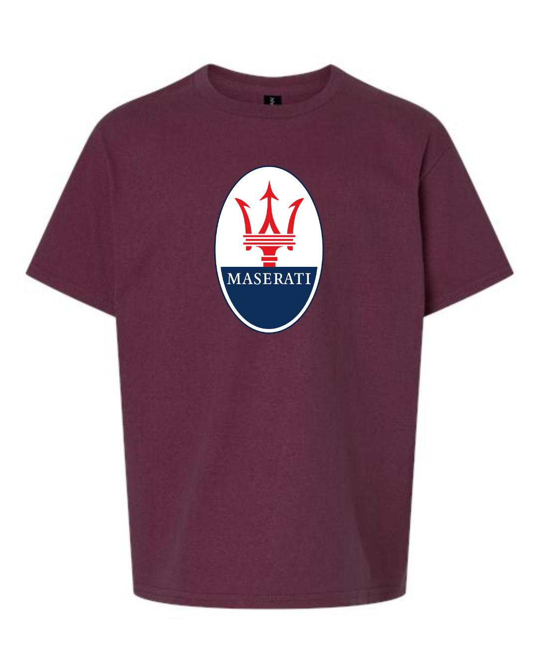 Add Italian luxury to their wardrobe with this Youth Maserati Logo T-Shirt. Showcasing the iconic red trident emblem on a classic maroon tee, this design blends sporty elegance and timeless style perfect for young car enthusiasts and fans of premium performance brands.