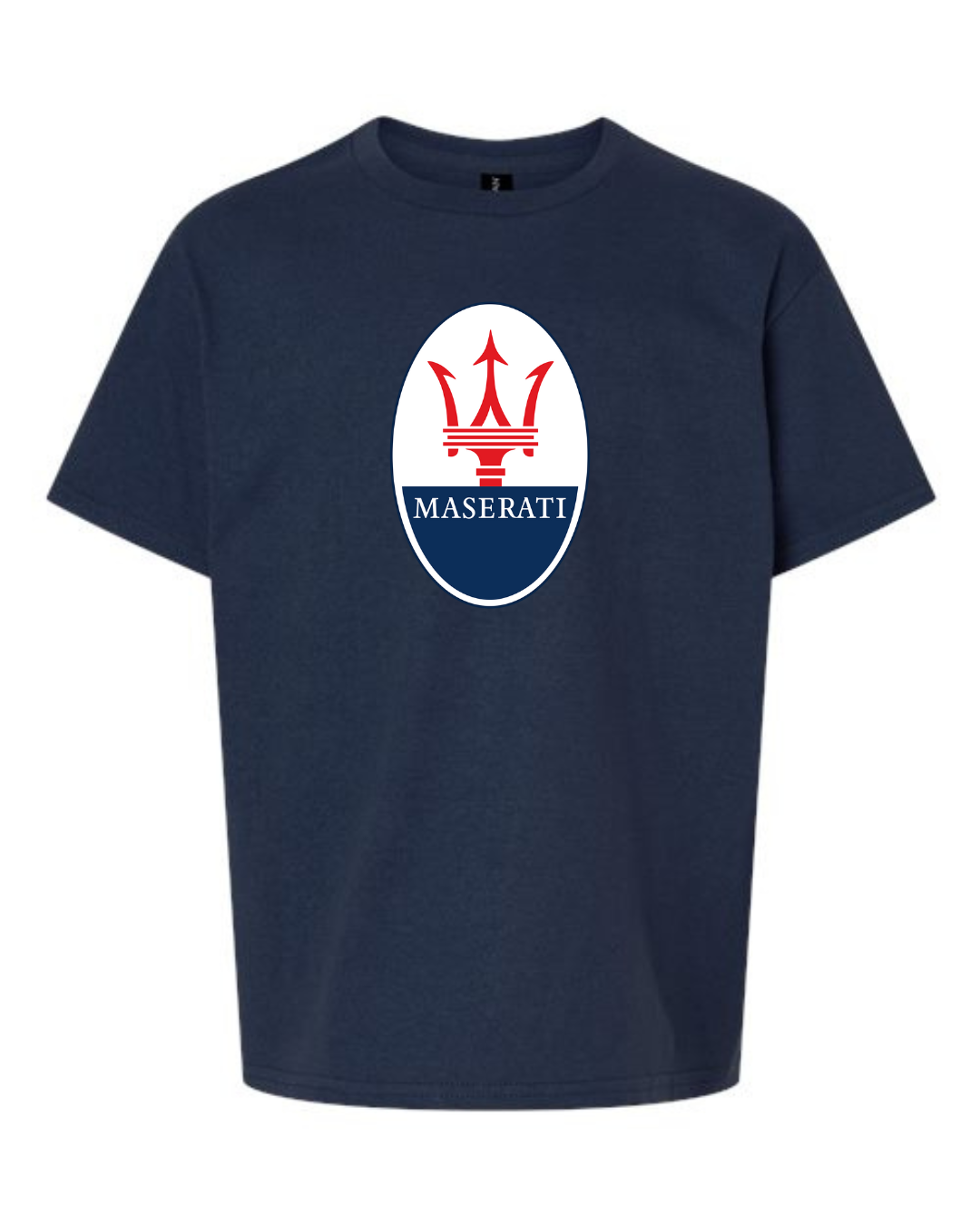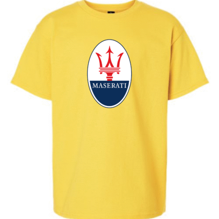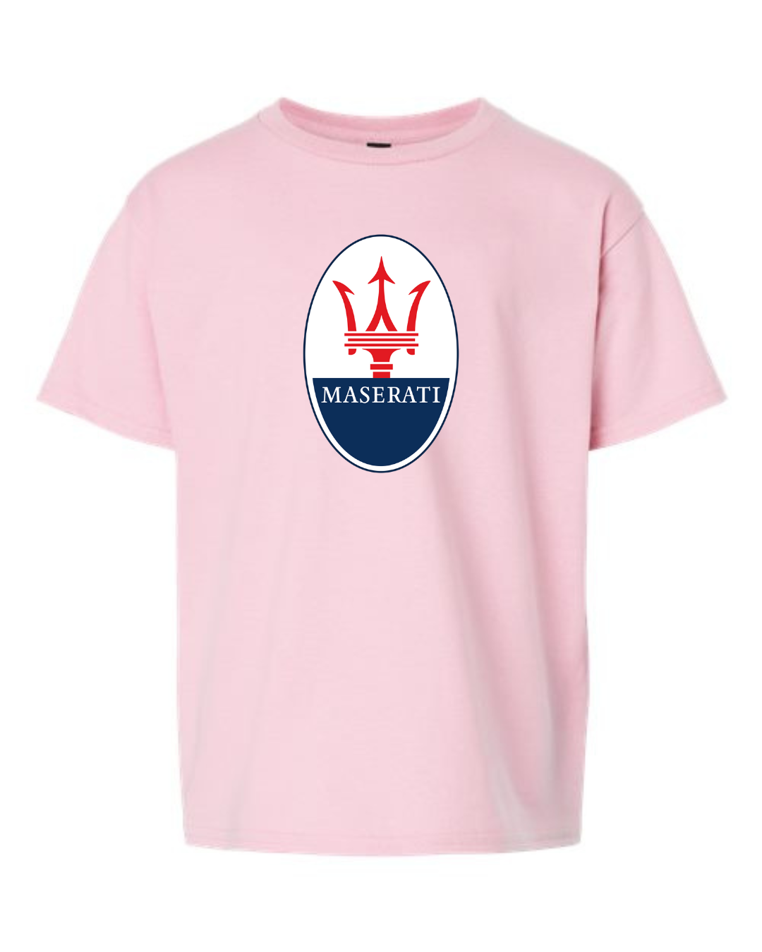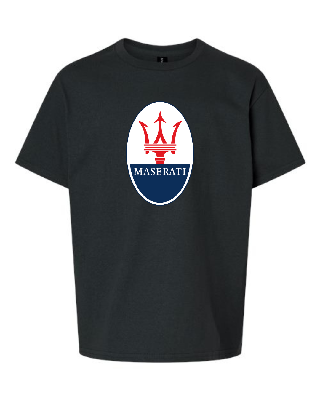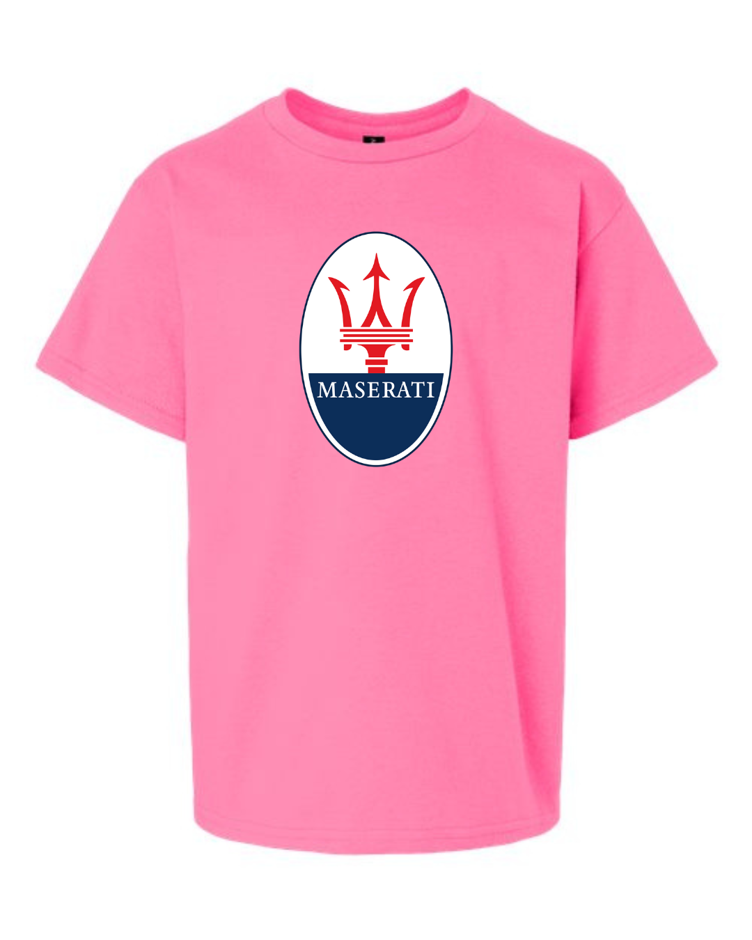 Add Italian luxury to their wardrobe with this Youth Maserati Logo T-Shirt. Showcasing the iconic red trident emblem on a classic maroon tee, this design blends sporty elegance and timeless style perfect for young car enthusiasts and fans of premium performance brands.