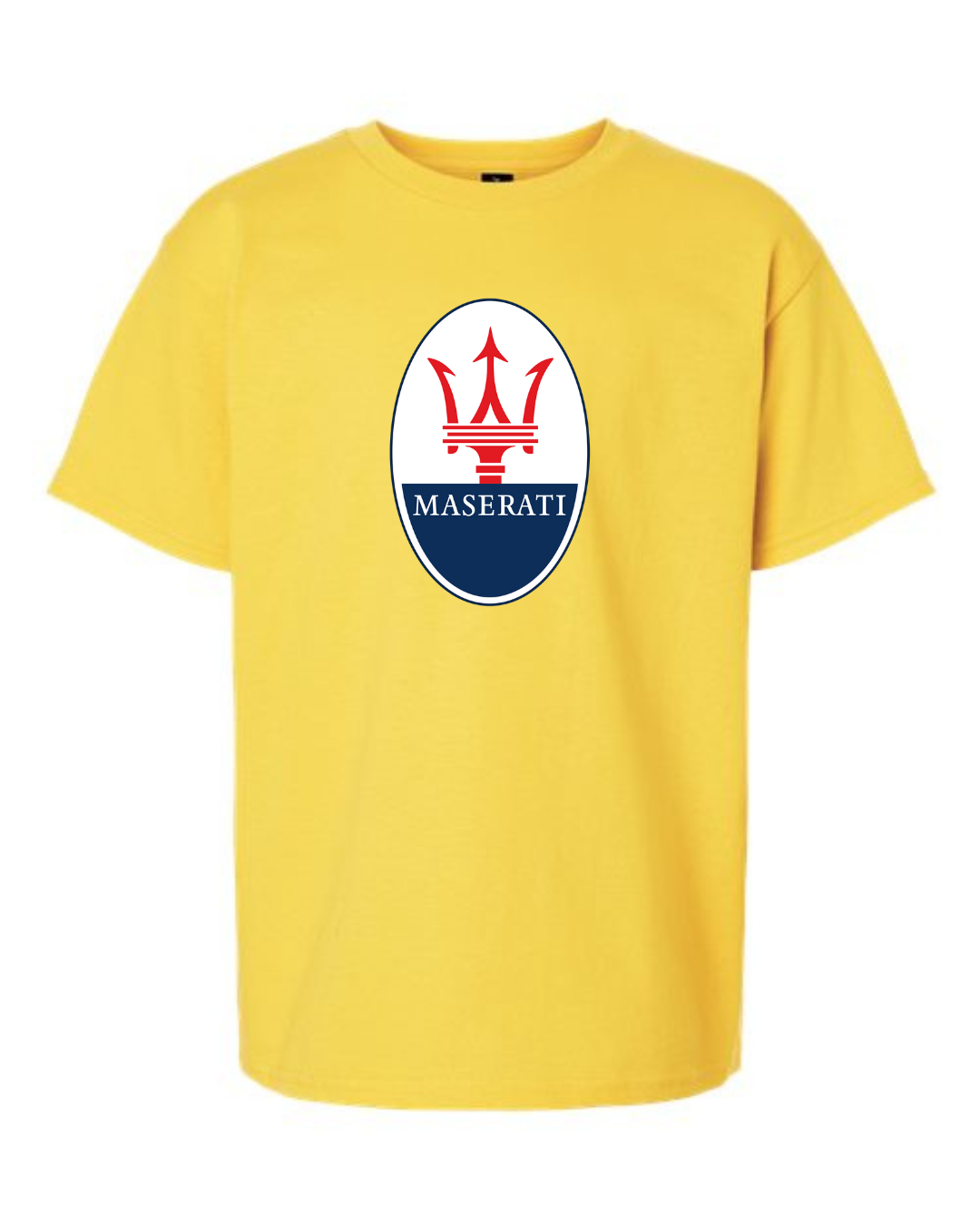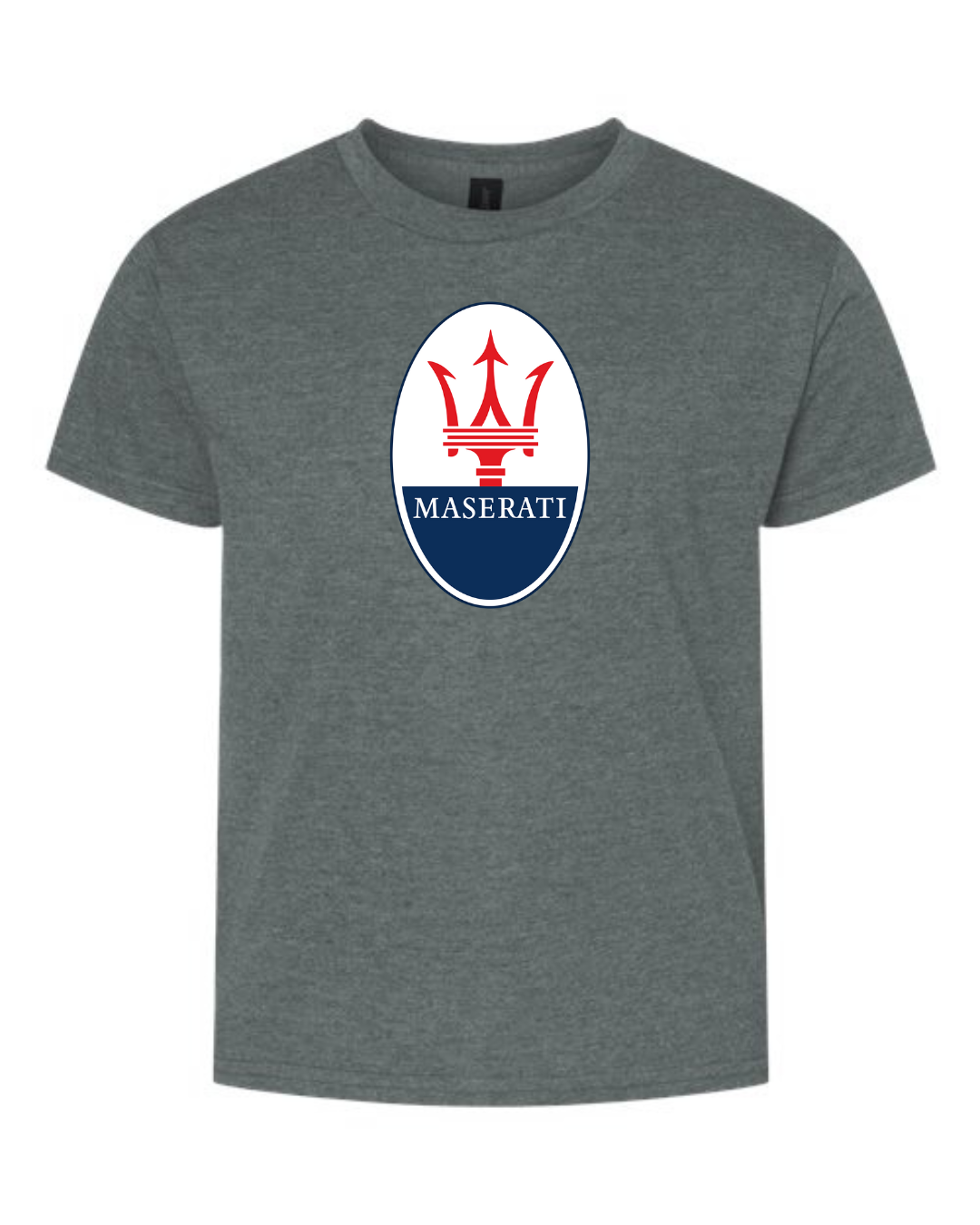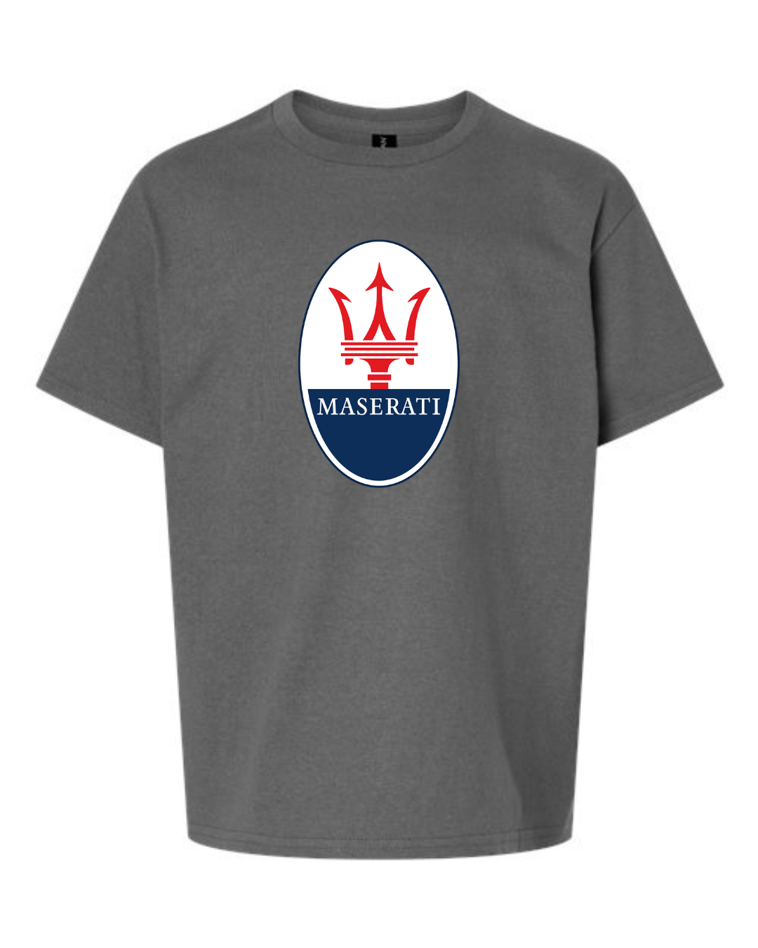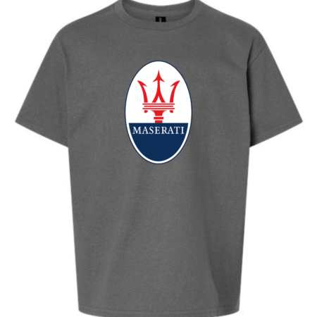 Add Italian luxury to their wardrobe with this Youth Maserati Logo T-Shirt. Showcasing the iconic red trident emblem on a classic maroon tee, this design blends sporty elegance and timeless style perfect for young car enthusiasts and fans of premium performance brands.