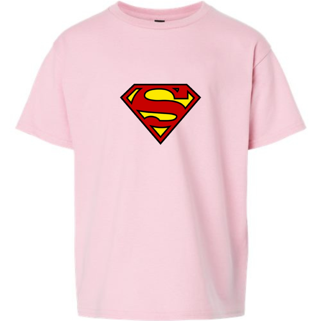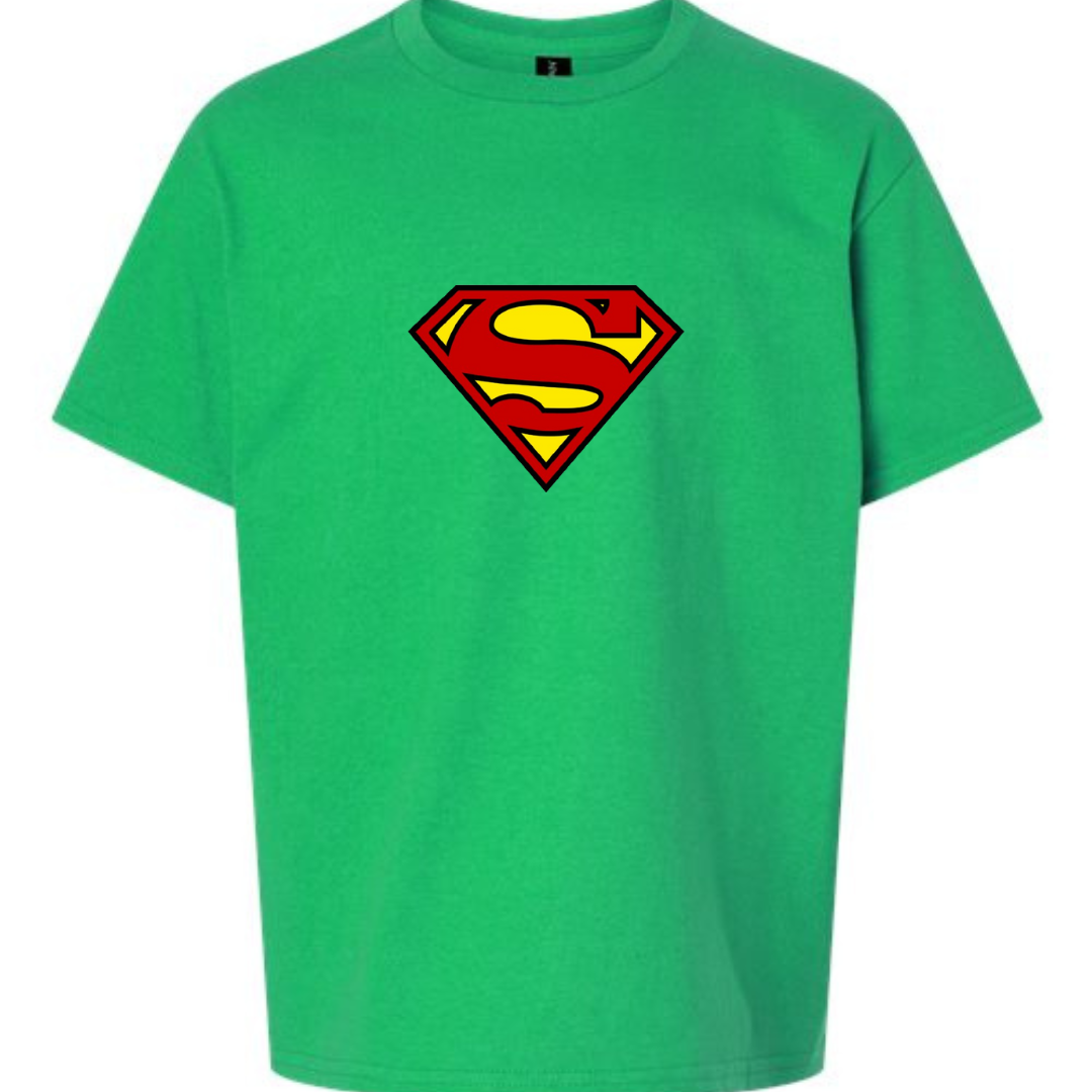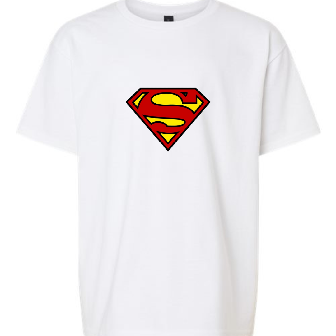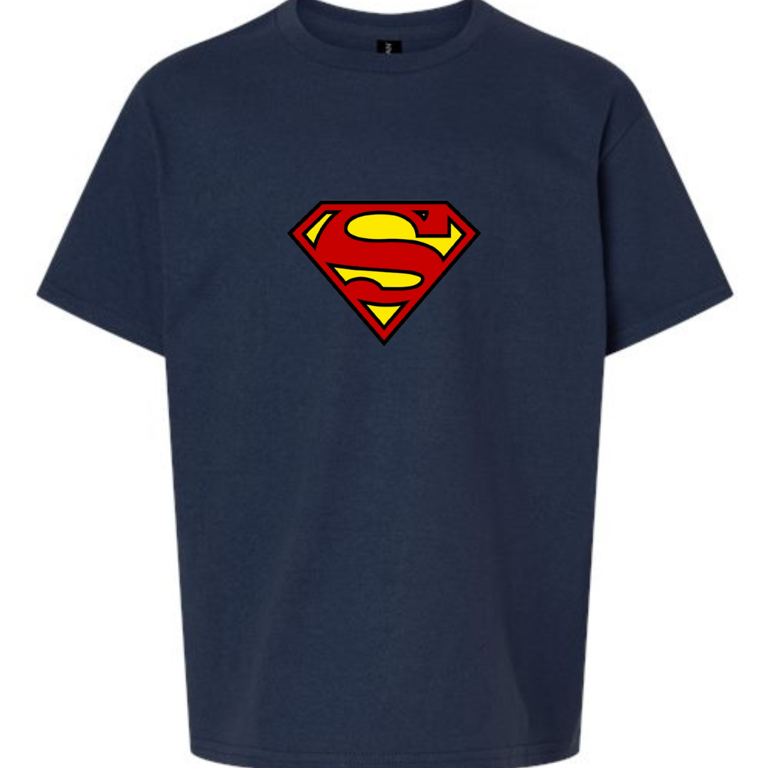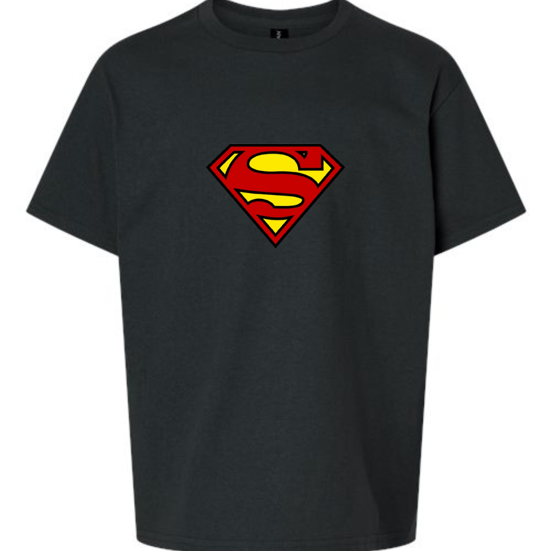 Let them channel their inner hero with this Youth Superman Logo T-Shirt. Featuring the iconic red and yellow “S” shield on a bold black tee, this design is perfect for young fans of the Man of Steel. Comfortable, powerful, and ready for adventure—on or off the playground.