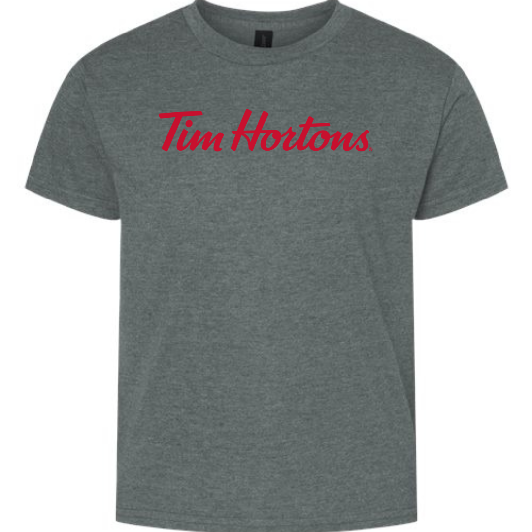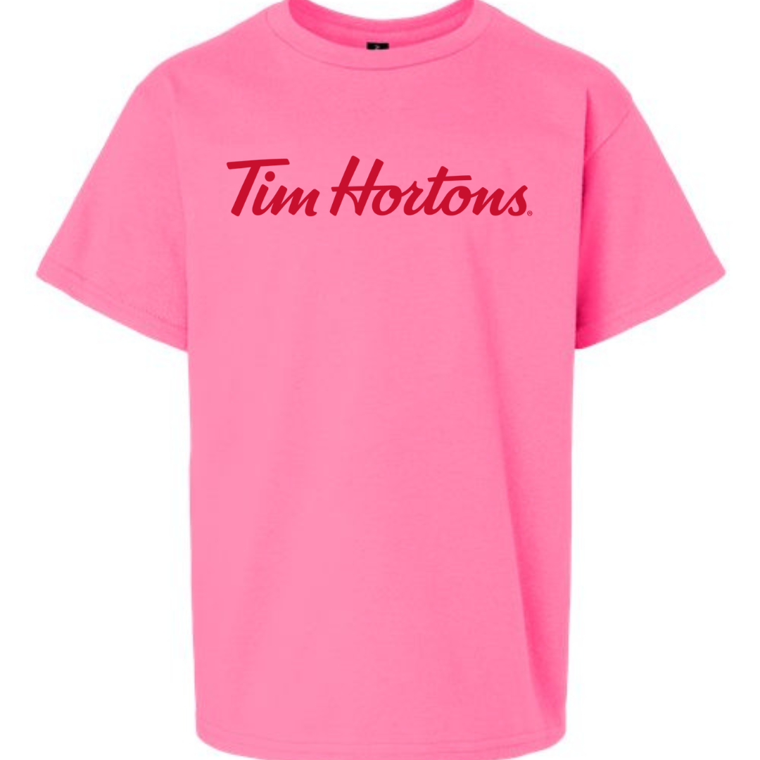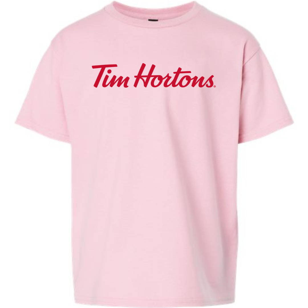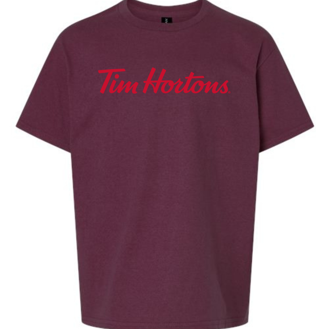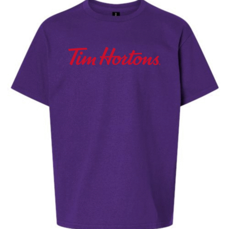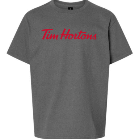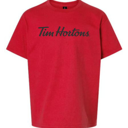 Celebrate your love for Canada’s favorite coffee shop with this Youth Tim Hortons Logo Inspired T-Shirt! Featuring the signature red script logo, it’s a perfect pick for young fans of the iconic brand.